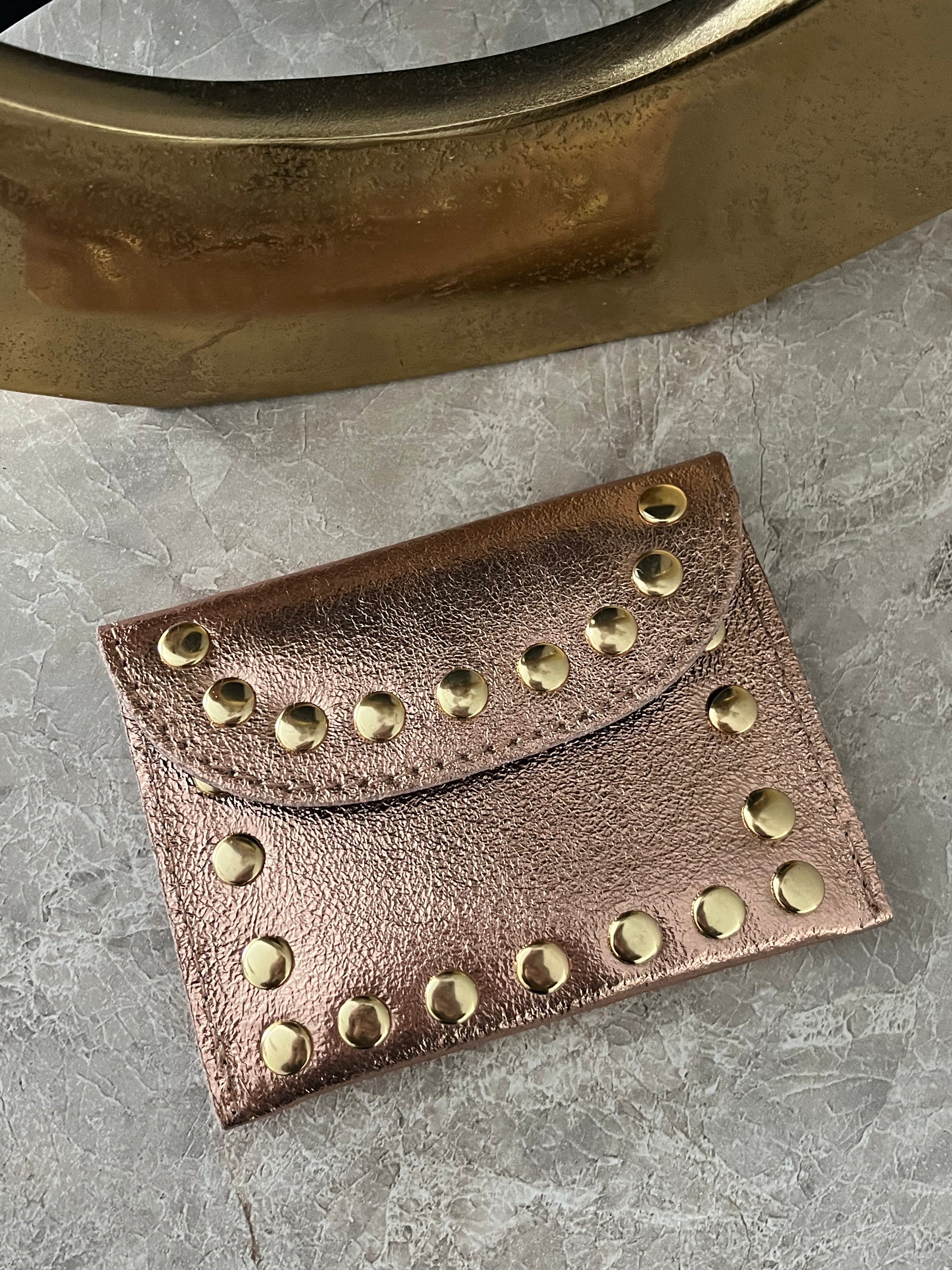 Jenna Metallic Leather Card Holder | Champagne