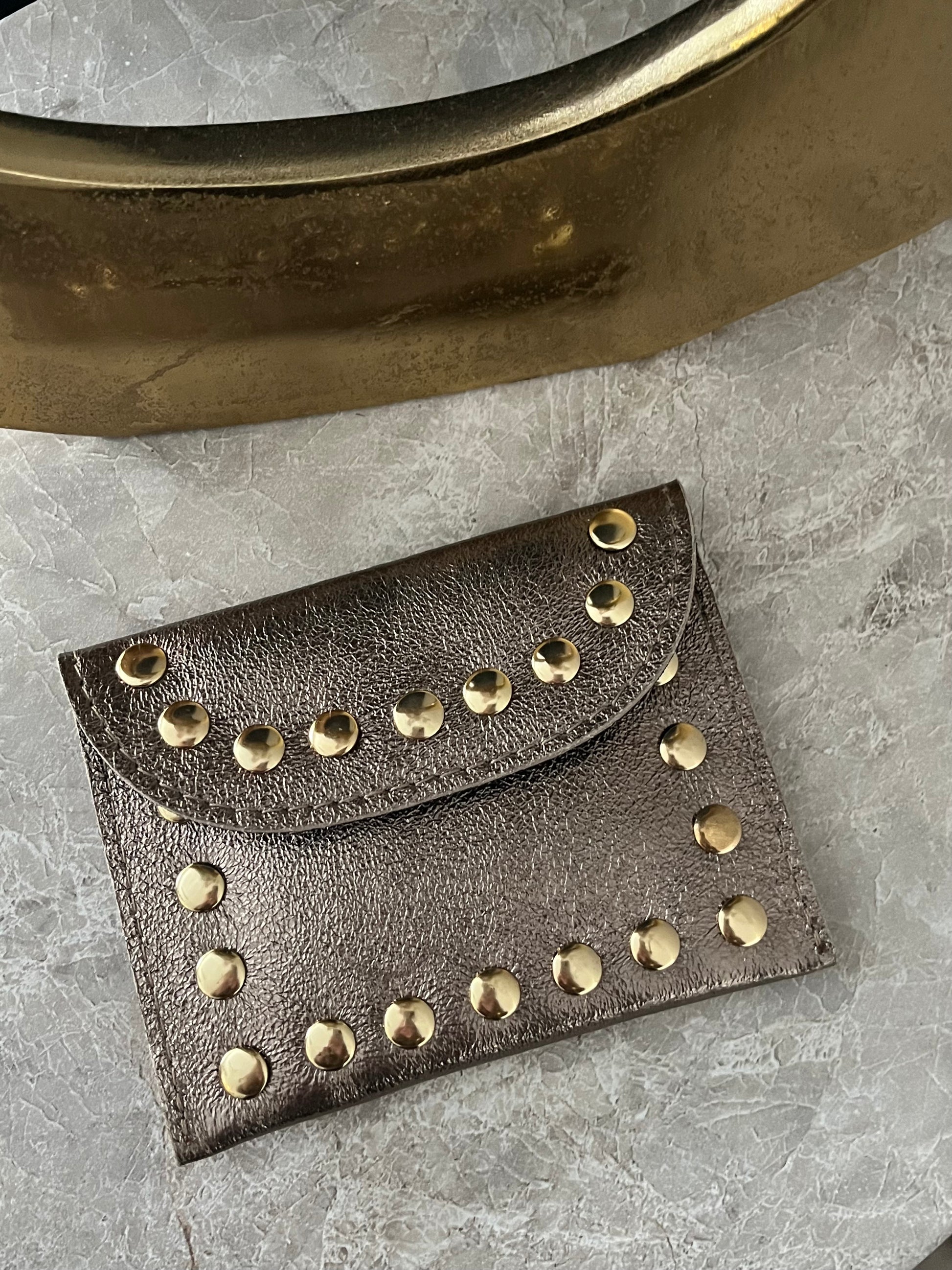 Jenna Metallic Leather Card Holder | Bronze